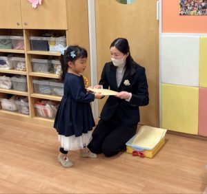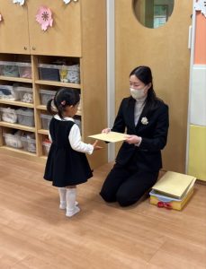 卒園証書も大きな声で返事をしてもらう事が出来ていました![]()