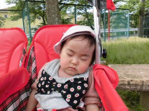 お散歩、子ども遊園地でたくさん遊び疲れたのか
