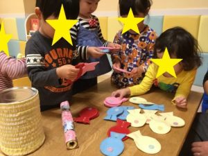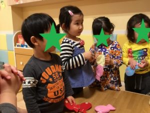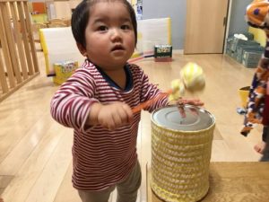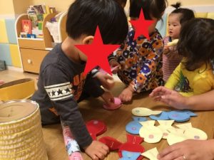 これは、0歳さんには難しいので2歳児のお兄さんお姉さんの出番です♪