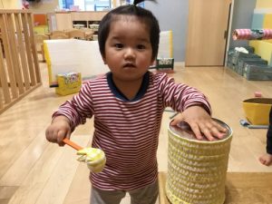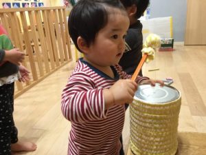 0歳児さんもお気に入りのこの太鼓(*’▽’)?ポンポンと太鼓を鳴らしてご機嫌の様子です( *´艸`)