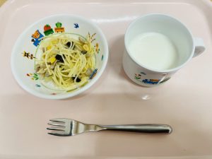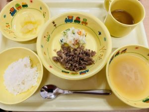 ※りんごは、誤食を防ぐため園では煮りんごにしています。みんな美味しそうにしっかりと噛んで食べることができていました。