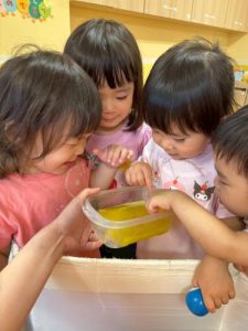 2025-08-29 園ブログ☀️✨ Category:園ブログ こんにちは🌈☁️💗 サンライズキッズ保育園相模原園です☀️✨ 今回は寒天遊びの様子をお届けします😄❣️ 寒天が出てくると「なになに?!」と興味津々の子どもたち🧒👦💗 実際に触って遊んでみよう❣️ 「つめたーい!」「おもしろーい!」 ヘラや型を使って楽しそうに遊んでくれました😆🎵🌈