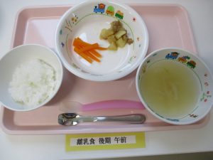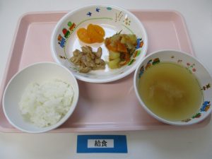 2018-08-04 8月4日(土)お給食 Category:給食ピックアップ ★幼児食★ ・ごはん ・みそ汁 ・豚肉の味噌焼 ・ツナポテト炒め煮 ・みかん缶 ★離乳食★ ・おかゆ ・みそ汁 ・ツナとポテトの煮物 ・ゆでにんじん