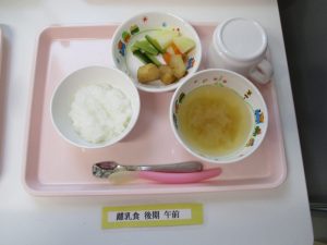 2018-08-07 8月7日(火)お給食 Category:給食ピックアップ ★幼児食★ ・ごはん ・みそ汁 ・スティックきゅうり ・鯖の竜田揚げ ・ポテトのマヨドレ和え ★離乳食★ ・おかゆ ・みそ汁 ・煮魚 ・茹で野菜