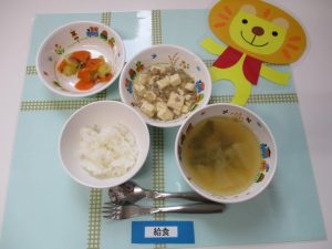 ★幼児食★ ・ご飯 ・マーボー豆腐 ・ベーコンポテト ・味噌汁