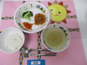 ★幼児食★ ・パン ・肉団子スープ ・おかか和え ・スパゲッティソテー ★離乳食★中期食 ・おかゆ ...