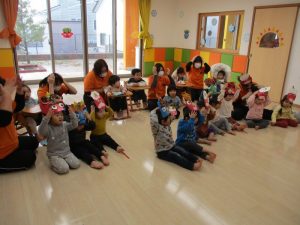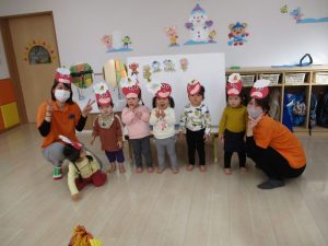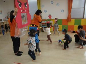 保育園では、2月3日に節分会を行いましたが、2日にお家で豆まきをしたと教えてくれる子も沢山いました![]()