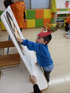 最初に、節分についてのパネルシアターを見ましたよ![]()