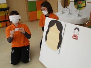 福笑いでは、みんなで協力してお顔を作りました![]()
