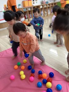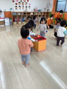 何個も両手に持って運ぶ子や一つずつ何回も行ったりきたりするお友だちがいましたよ🙌