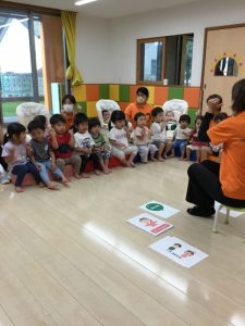 サンライズキッズ境港園は、英語・リトミック・体操・フラッシュカード・絵本の読み合いなど、育脳活動に取り組んでいる保育園です