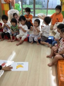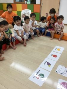 「hungry 」のお友だちもいるので、たくさんのフルーツが出てくる歌「Are you hungry?」を歌っていきましょう♫