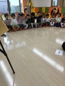 カードの絵の名前にリズムに合わせて手を叩きます。