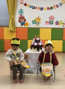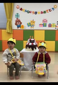 今月はりんご組の男の子といちご組の女の子が1歳ずつ大きくなりました![]()