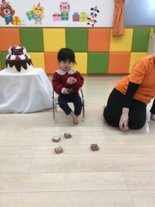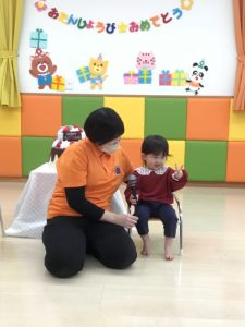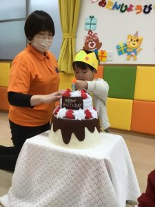 どの子もお友だちの名前をしっかり覚えていて、誕生席に座るお友だちの姿を見ながら「〇〇君と〇〇ちゃんだね