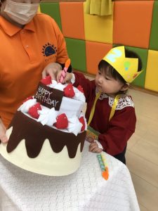 」と言う声が聞こえて来ました。毎日一緒に過ごす中で、クラスの枠を超えた繋がりが出来ている事に喜びを感じた誕生日会でした![]()