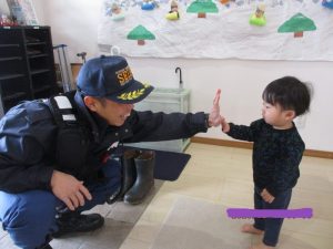 消防隊員さんに抱っこしてもらって緊張したかな![]()