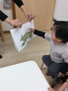 「今日はみんなで見つける絵本を読んでみるよぉ〜