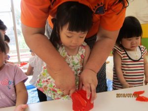 今週は室内の中でひんやり感を味わえる活動をしてみました☆