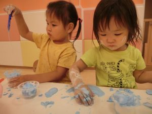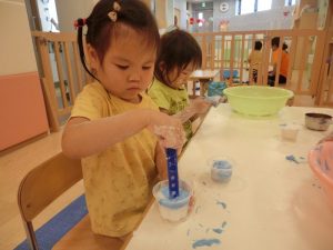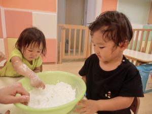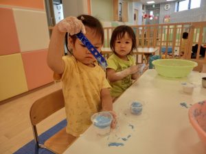 不思議な感じだけど、感触遊びって面白いね。