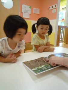 朝のおやつ前に、調理前のさつまいもを見たり、絵本見たりしました![]()