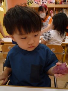 絵本を見た後は、さつまいもを実際に触りました![]()