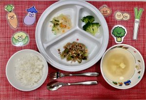 サンライズキッズ保育園 ◎給食の様子 今日の給食は麻婆なすです。なすが苦手な子も、この献立はごはんと...