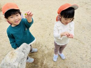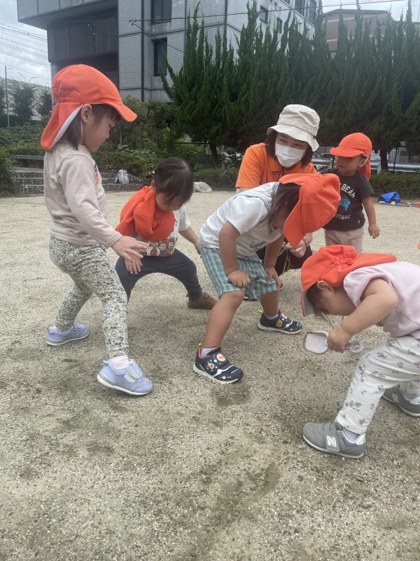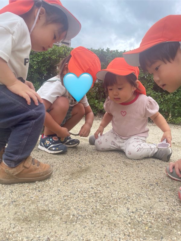 誰かが見つけると、だんだんお友だちが集まってきて、みんなで虫さんのトンネルを作る姿が😆