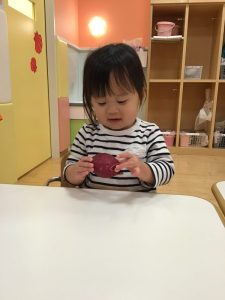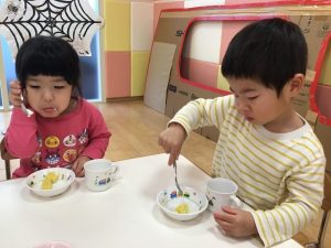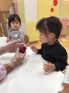 甘い匂いにつられて、いちご組のお友だち大集合です💛