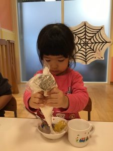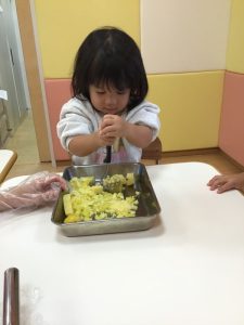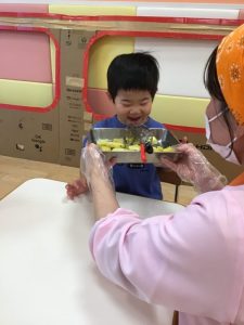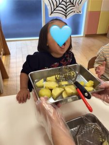マッシュした後は、給食の先生にバトンタッチ🙇♀️