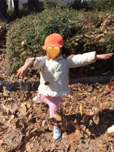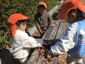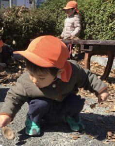 落ち葉を見つけると、「はっぱあそびしたい」の声が!!😁