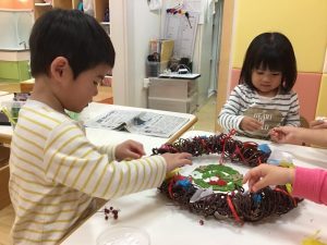 お花紙を入れ込んだり、木の実をつけたりして飾り付け✨