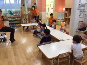 こんにちは🌞サンライズキッズ保育園瀬田駅前園です♫ 今週は「 初めての行事えほん お月見 だんごたべ...