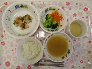 10月1日(月)のこんだて *いちごぐみさん・りんごぐみさん* ・ごはん ・玉ねぎとじ...