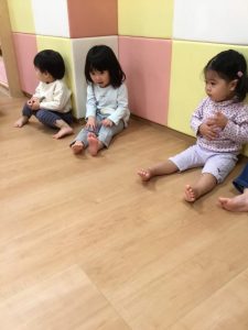 「リトミックをはじめます」の声かけでピシっと並んで待っていますよ❣️