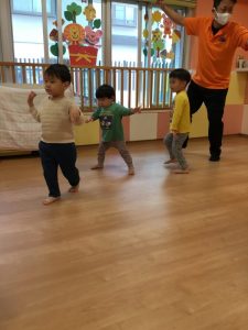 様々な音楽を使って、音やリズムに触れながら楽しく身体を動かしていますよ😊