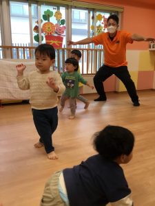 様々な音楽を使って、音やリズムに触れながら楽しく身体を動かしていますよ😊