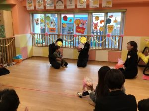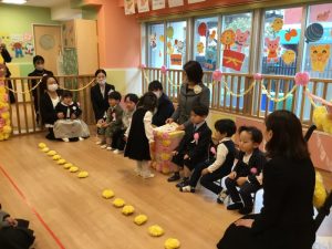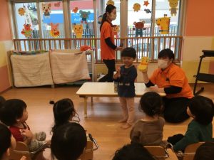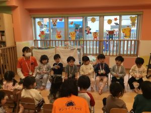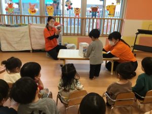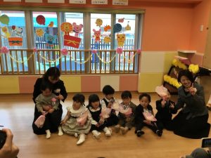 最後はいちご組さんから、プレゼントをもらったりんご組さん。