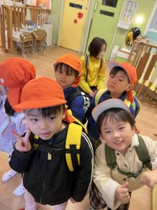 リュックをしっかり背負って準備満タンなりんご組さん🎒