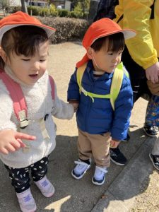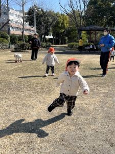 まずは、いちご組さんやもも組さんのお友だちと一緒に噴水公園へ💨