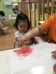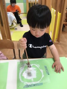 製作で様々な素材に触れ、手や指を使って色を出す事を楽しんでいますよ!