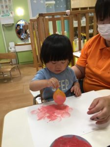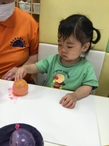 はじめての水風船や絵の具に興味がいっぱいです😊