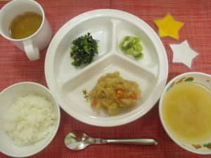 サンライズキッズ保育園 ◎給食の様子 楽しく遊んだあとは、給食の時間です! 今日のじゃがいものそぼろ...