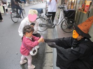 ご近所のお店屋さんにもお菓子をもらいに行きました♪