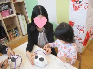 そのあとはハロウィンバックを保護者さんと一緒に作成✨