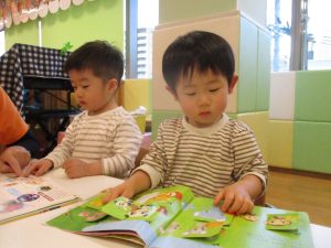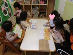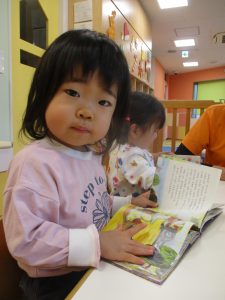 今日はあいにくの曇り空でしたので、室内で絵本の時間をたくさんとりました。