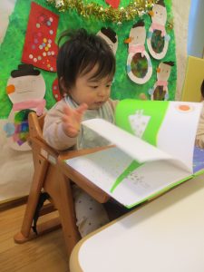 笑顔で絵本を読んだり、興味深くじっと見たり。。。。。