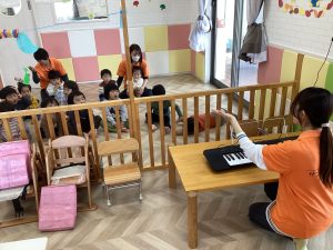 「まねっこ、まねっこ、ソファミレド」のお歌に合わせて音当てクイズもしていますよ🎵
