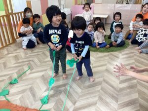 順番を待っている子どもたちも掛け声を合わせて応援📣