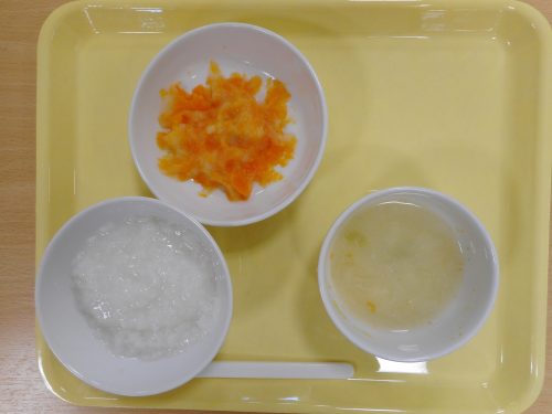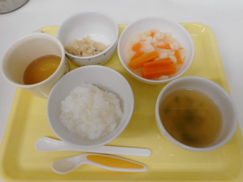 2018-07-05 7月5日(木)の給食&離乳食&おやつメニュー Category:給食ピックアップ 本日の給食メニュー ・ごはん ・魚のみそ焼き ・野菜のおかか和え ・ジャーマンポテト ・わかめのみそ汁 (初期食) (中期食) 本日の離乳食メニュー ・おかゆ ・煮魚 ・ゆで野菜 ・ジャーマンポテト風 本日のおやつメニュー ・茹でとうもろこし ・牛乳